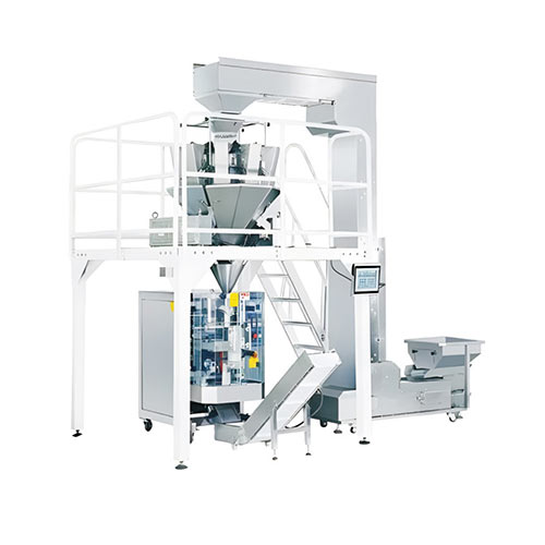 多工位袋库、上袋机构、称重计量机构、检修平台、主框架、输送机、折边封口机。备注:粉末物料另加配除尘及排气机构适应多种物料的自动化计量包装,应用于新材料食品、化肥、化工、建材、粮食等行业。